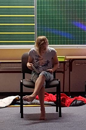In der Schule haben wir noch ein bisschen Disco gemacht und haben uns dann bettfertig gemacht. Dann hat jeder noch aus seinem Buch vorgelesen und dann haben wir geschlafen.