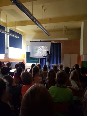 Den Kindern der 1. und 2. Klasse stellte der Autor sein neues Buch „Mein Freund der Delfin“ vor. Mit seinen Erzählungen und lustigen Zeichnungen begeisterte er die Schüler.