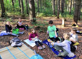 Die Klassen 1 und 3 gingen dieses Schuljahr gemeinsam auf den Wandertag. Unser Weg führt uns mit der Straßenbahn Richtung Syratal. Wir wanderten wunderschöne Waldwege entlang und genossen die Geräusche und Gerüche des Waldes. Da sich der Magen schon recht früh bemerkbar machte, schlugen wir unser „Essenslager“ mitten im Wald auf und veranstalteten ein kleines Picknick. Unser weiterer Weg führte uns schließlich noch in den Stadtpark, wo wir alle zusammen die Enten fütterten. Es war ein rundum gelungener Ausflug!