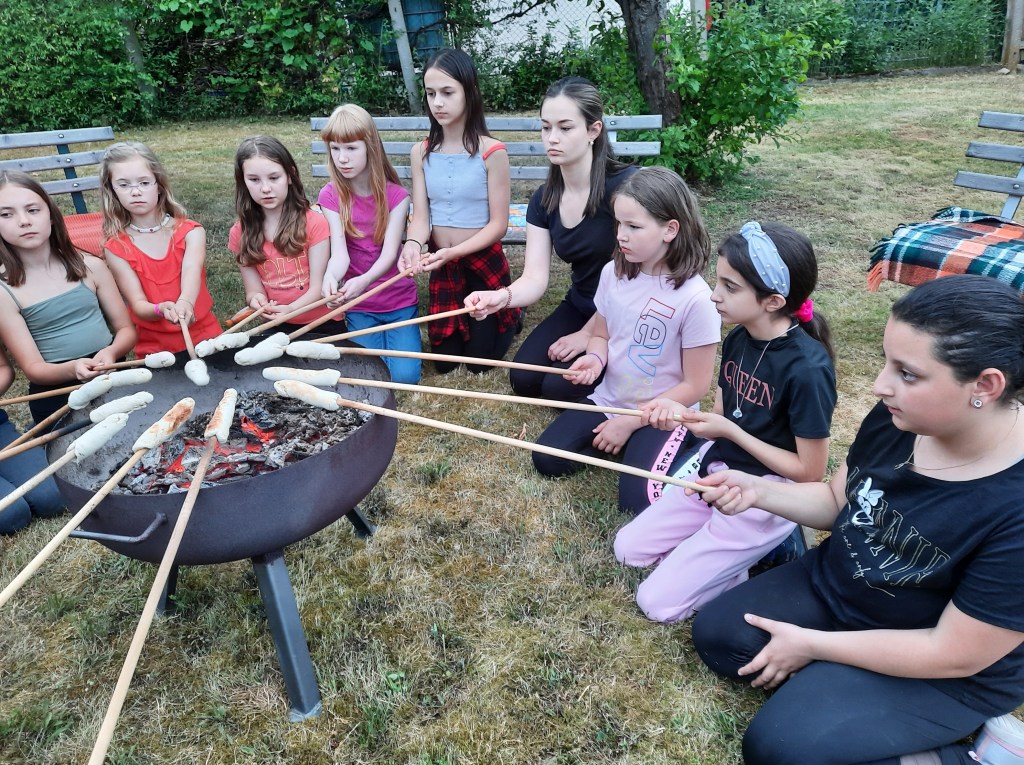 Höhepunkte an diesem Tag waren auch das gemeinsame Abendbrot im Schulgarten, eine Abendwanderung sowie das Backen von Stockbrot über der Feuerschale.