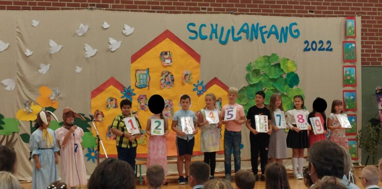 Für 24 Schulanfänger hieß es am Samstag, den 27.August, „Hurra, ich bin ein Schulkind!“. Vor den Augen ihrer stolzen Eltern, Großeltern und Verwandten durften unsere Schulanfänger mit ihrem Ranzen sowie Frau Meinhold, Frau Teuscher und der Hortnerin Frau Mehner in die Turnhalle der Herbartgrundschule einlaufen. Begrüßt wurden unsere Kleinsten mit einem Programm von unseren Drittklässlern. Die Kinder halfen den Zwergen und Häschen dabei, die Buchstaben und Zahlen zu lernen und konnten ihr Können unter Beweis stellen. Nach dem Programm und einer kurzen Ansprache von unserer Schulleitung Frau Sachs, durften unsere Schulanfänger selbst auf die Bühne und mit voller Stolz ihre liebevoll geschmückten Zuckertüten von ihren Eltern in Empfang nehmen.