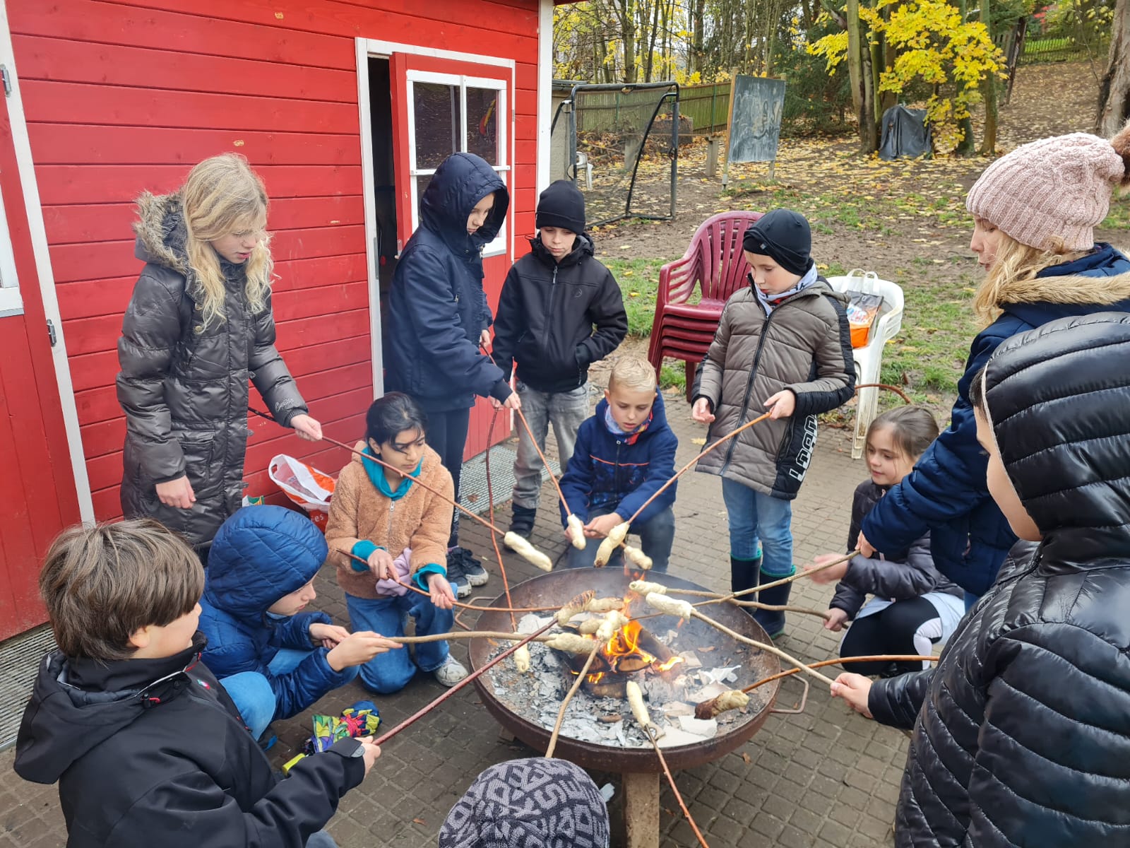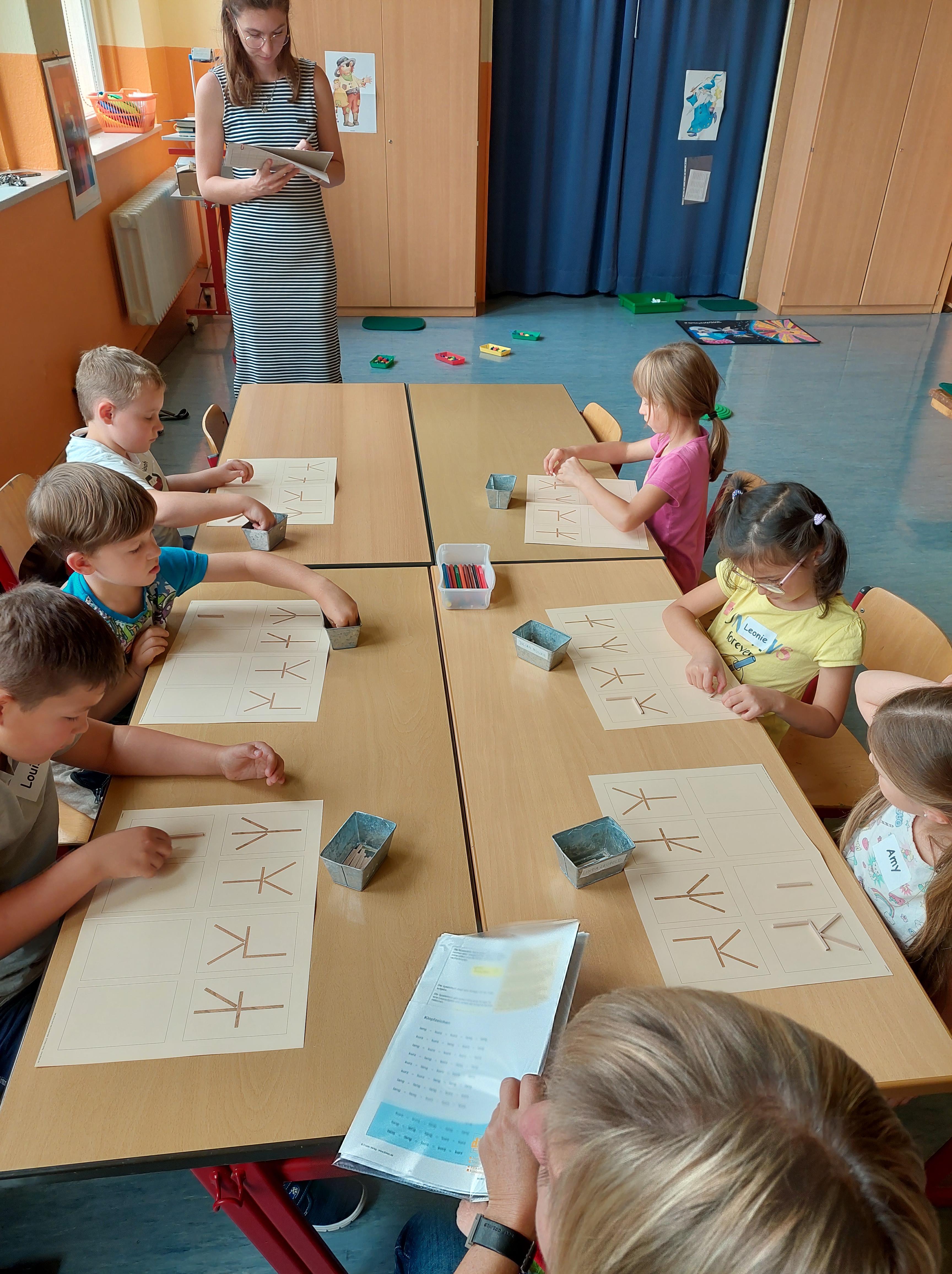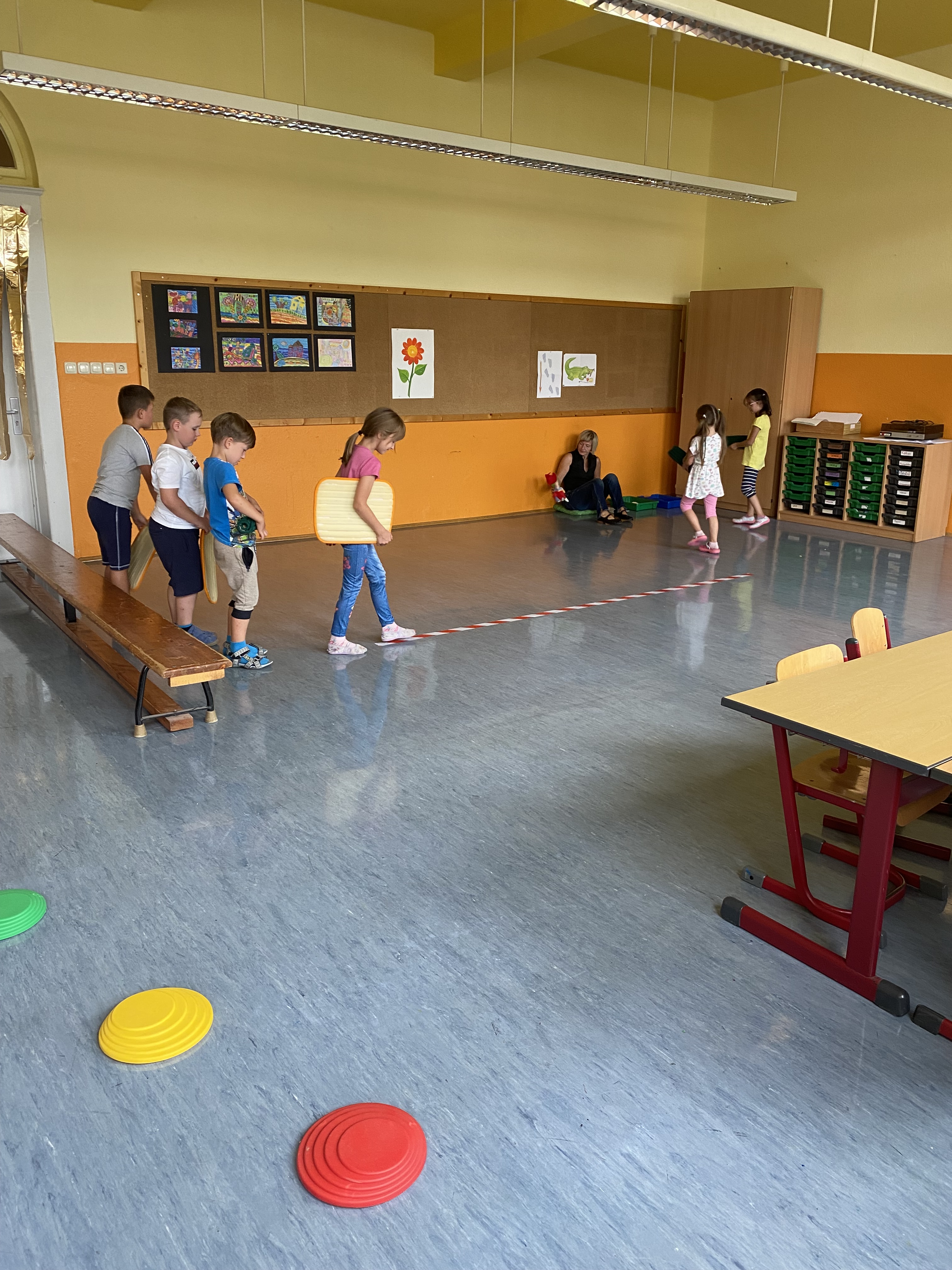 Nach der schönen Schulanfangsfeier hieß es für unsere Schulanfänger in den ersten Wochen Kennenlernen, erste Buchstaben und Zahlen schreiben, mit der Schere sauber schneiden und vieles mehr. Um die Kinder noch besser kennenzulernen ging es in Gruppen auf eine kleine Reise mit Frau Teuscher, Frau Sammler, Frau Meinhold und einem ganz besonders kleinen Gast. Gemeinsam mit der kleinen Hexe Mirola bereisten die Kinder einen gefährlichen Zauberwald. Da die Hexe nicht schreiben und lesen konnte, halfen sie ihr, gemeine Räuber zu bezwingen, Zauberkräfte beim Zauberer zu erlangen und hungrige Krokodile zu füttern. Die Kinder konnten der kleinen Hexe mit ihren eigenen Fähigkeiten helfen. So fädelten sie beispielsweise Ketten für den Räuber auf, legten Figuren nach, Sprachen Zaubersprüche und stellten ihre Balancierfähigkeiten unter Beweis.