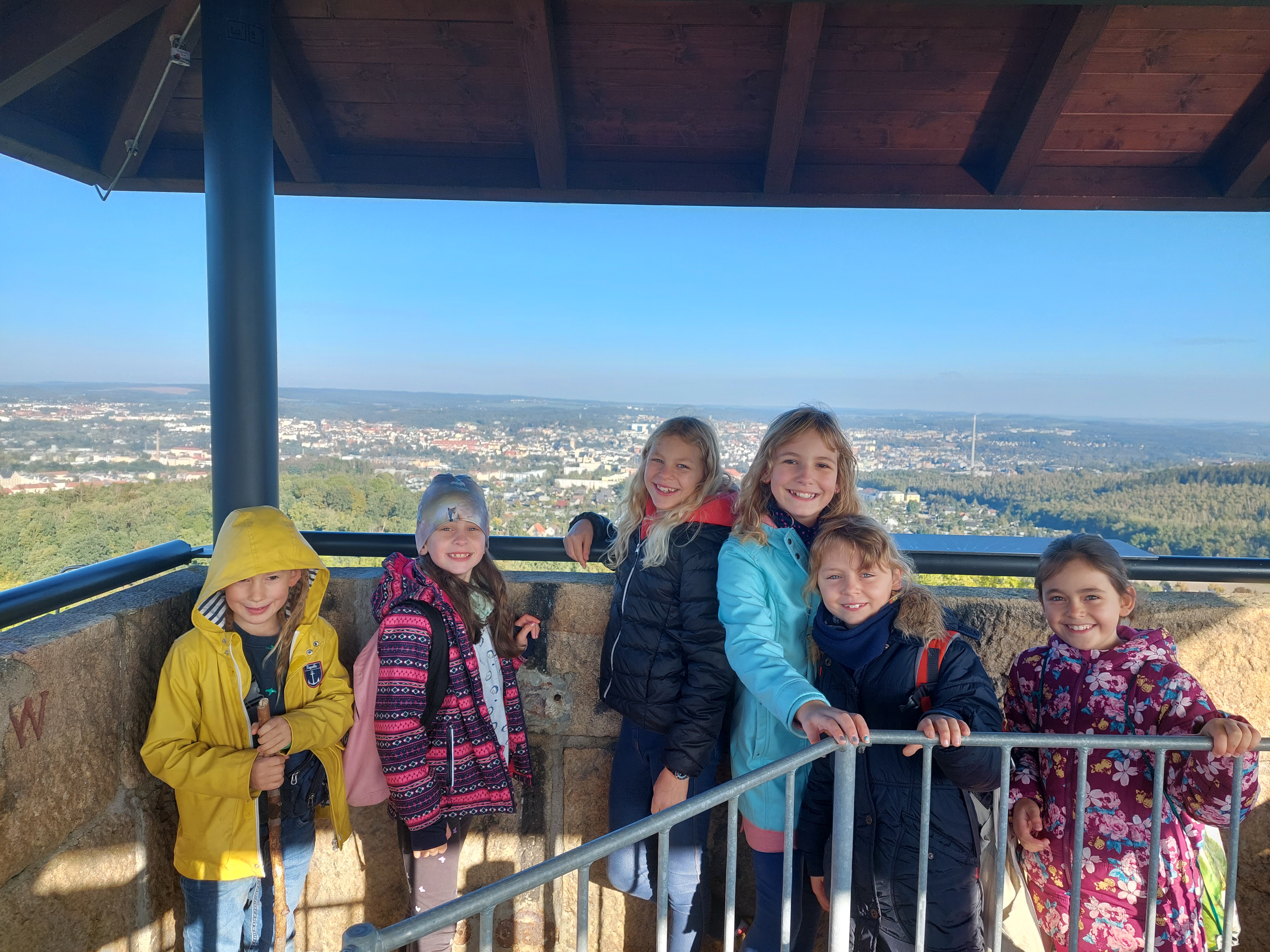 Bei wunderschönem Herbstwetter machte sich die Klasse 2 zusammen mit einigen Kindern der Klasse 4 zum Kemmler auf. Dort haben wir die schöne Aussicht über Plauen genossen und viele Blätter für den Sachunterricht gesammelt.