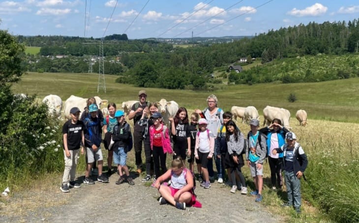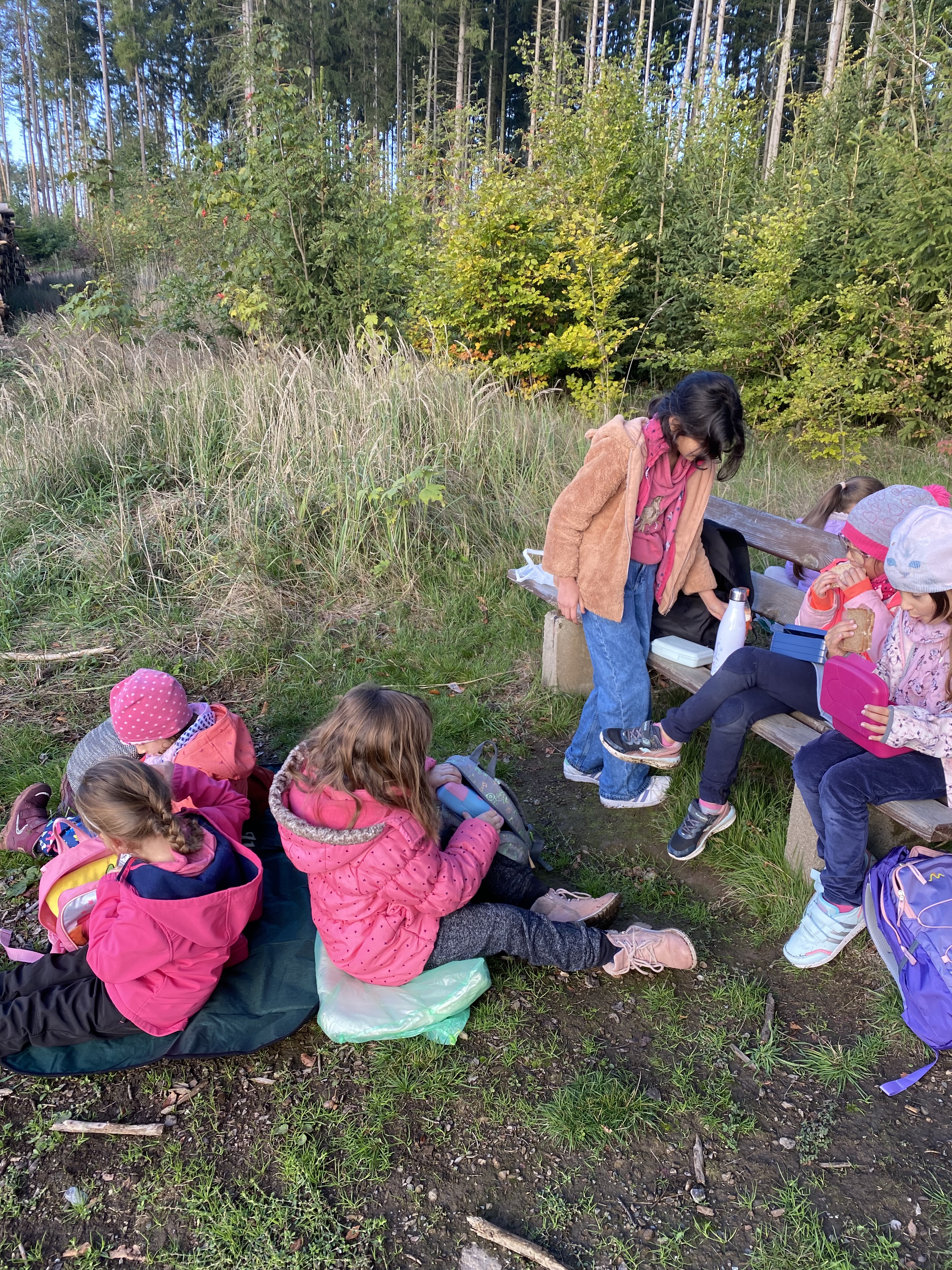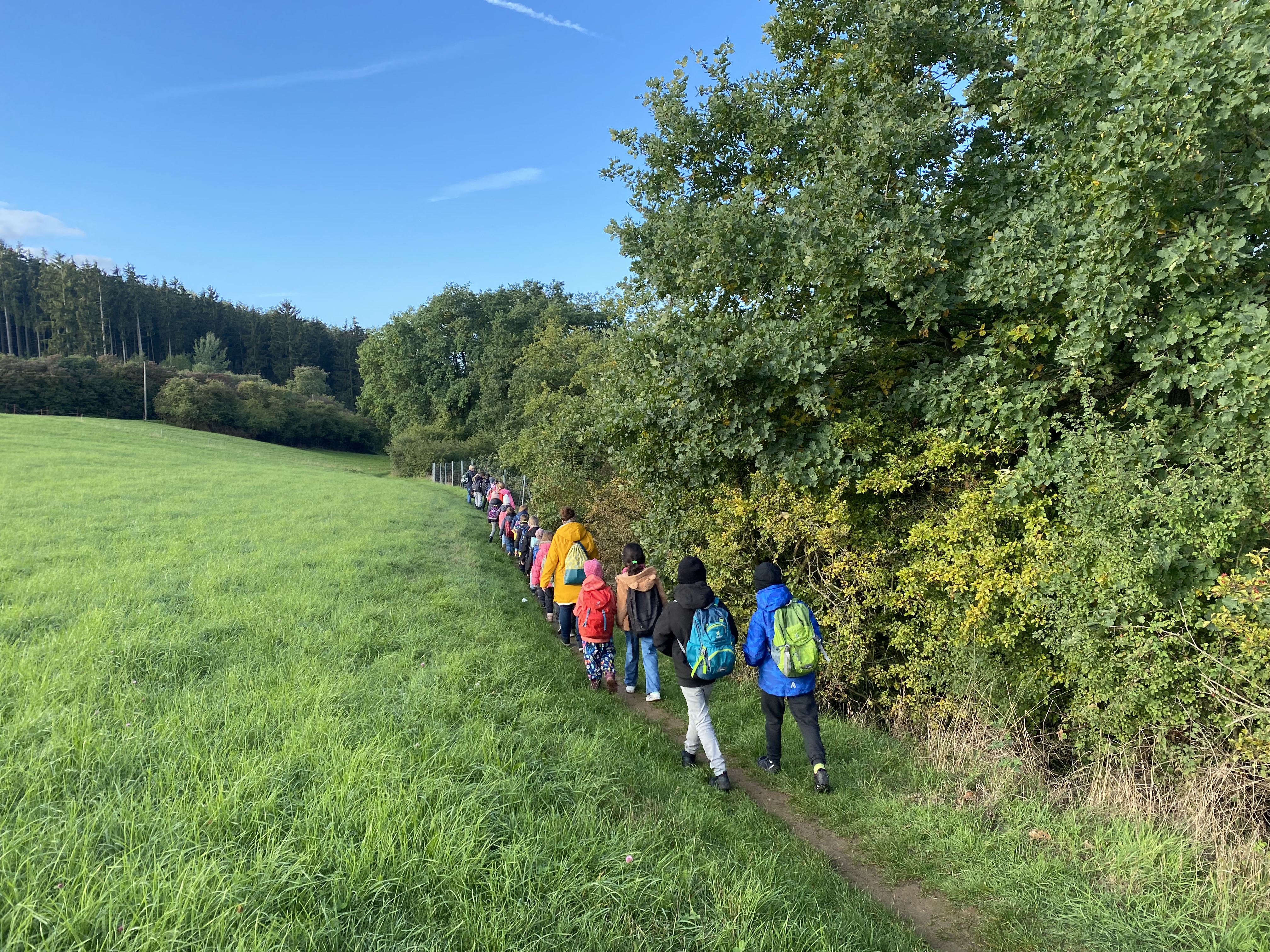 Gemeinsam mit einem Teil der vierten Klasse, den Kindern der DaZ-Klasse und den Erstklässlern gingen wir auf eine kleine Wanderung durch das schwarze Holz. Wir wanderten steile Berge hinauf, verschnauften bei einem kleinen Picknick im Wald, beobachteten Kühe auf der Weide und bestaunten die Natur um uns herum. Am Mittag kamen wir erschöpft, aber zufrieden in der Schule an und freuten uns auf unser Mittagessen und eine kleine Mittagsruhe.