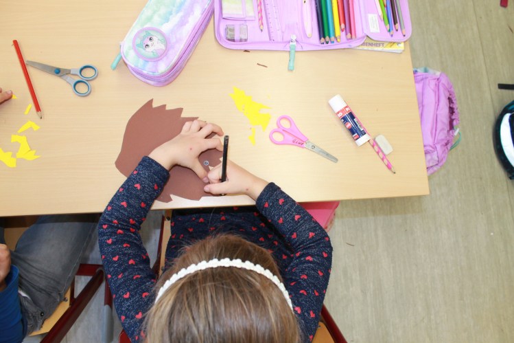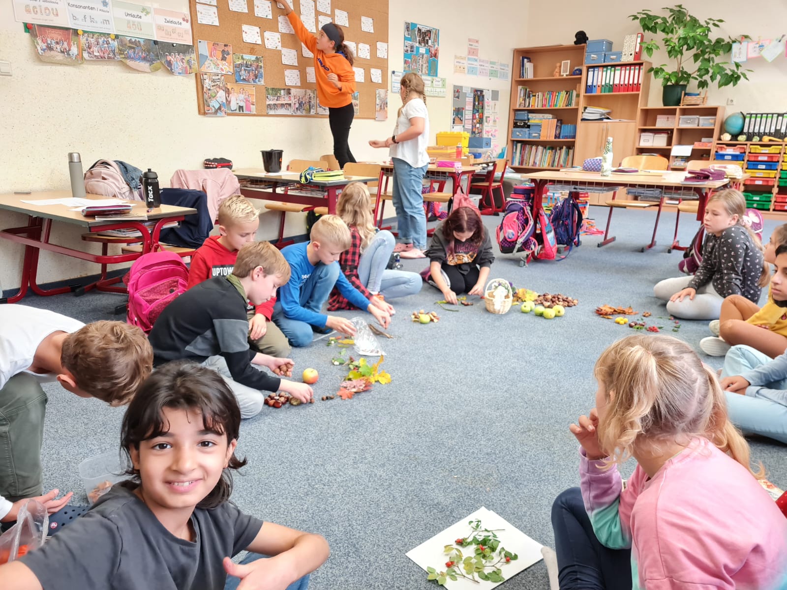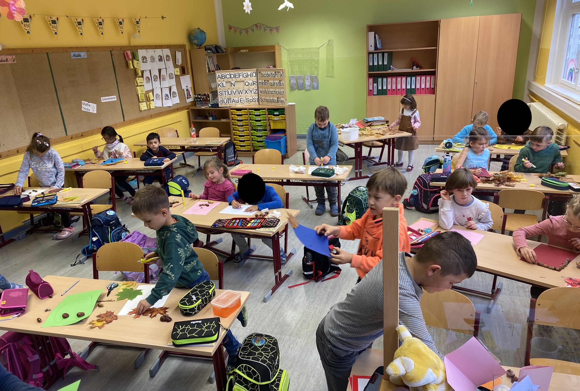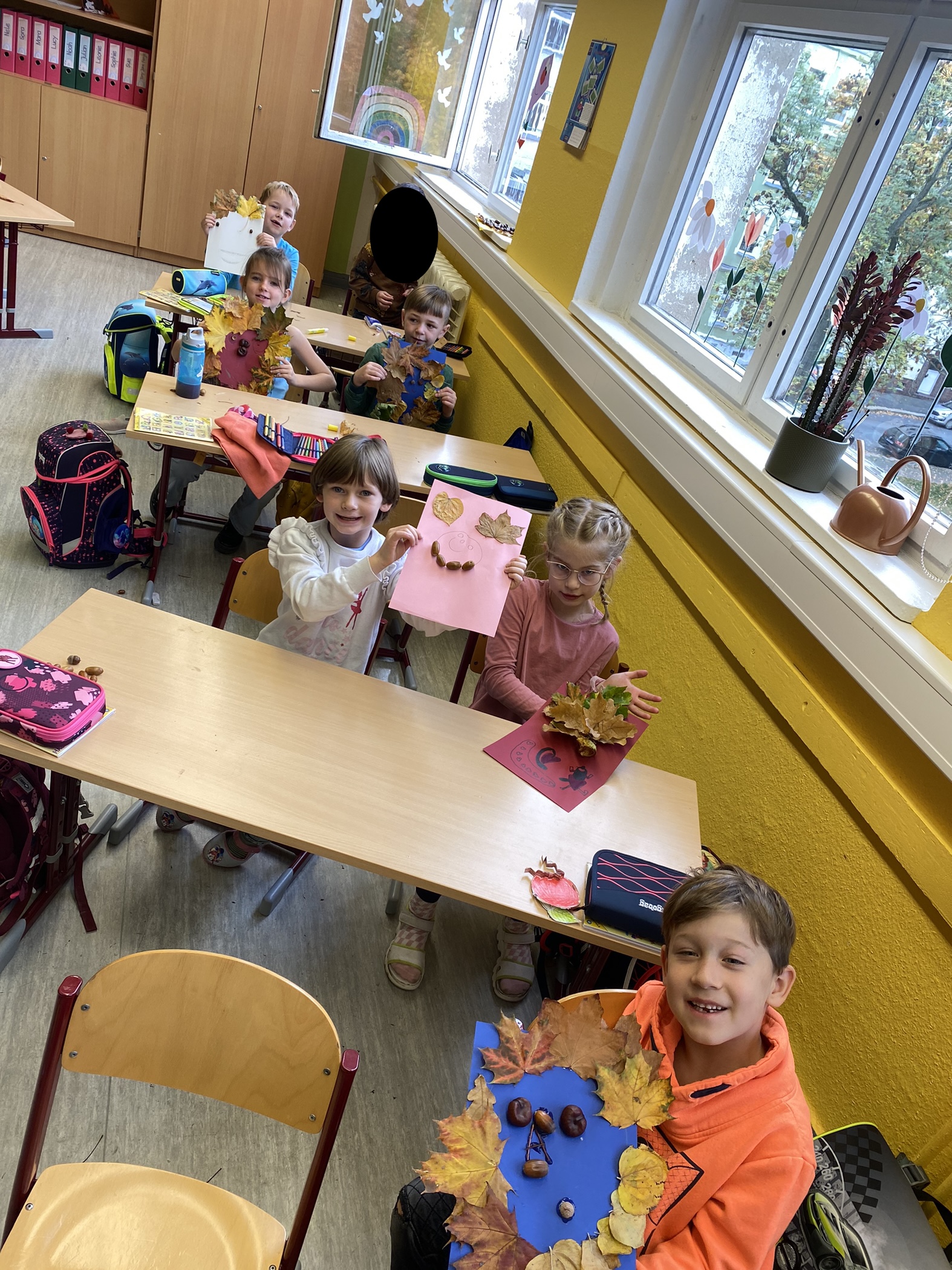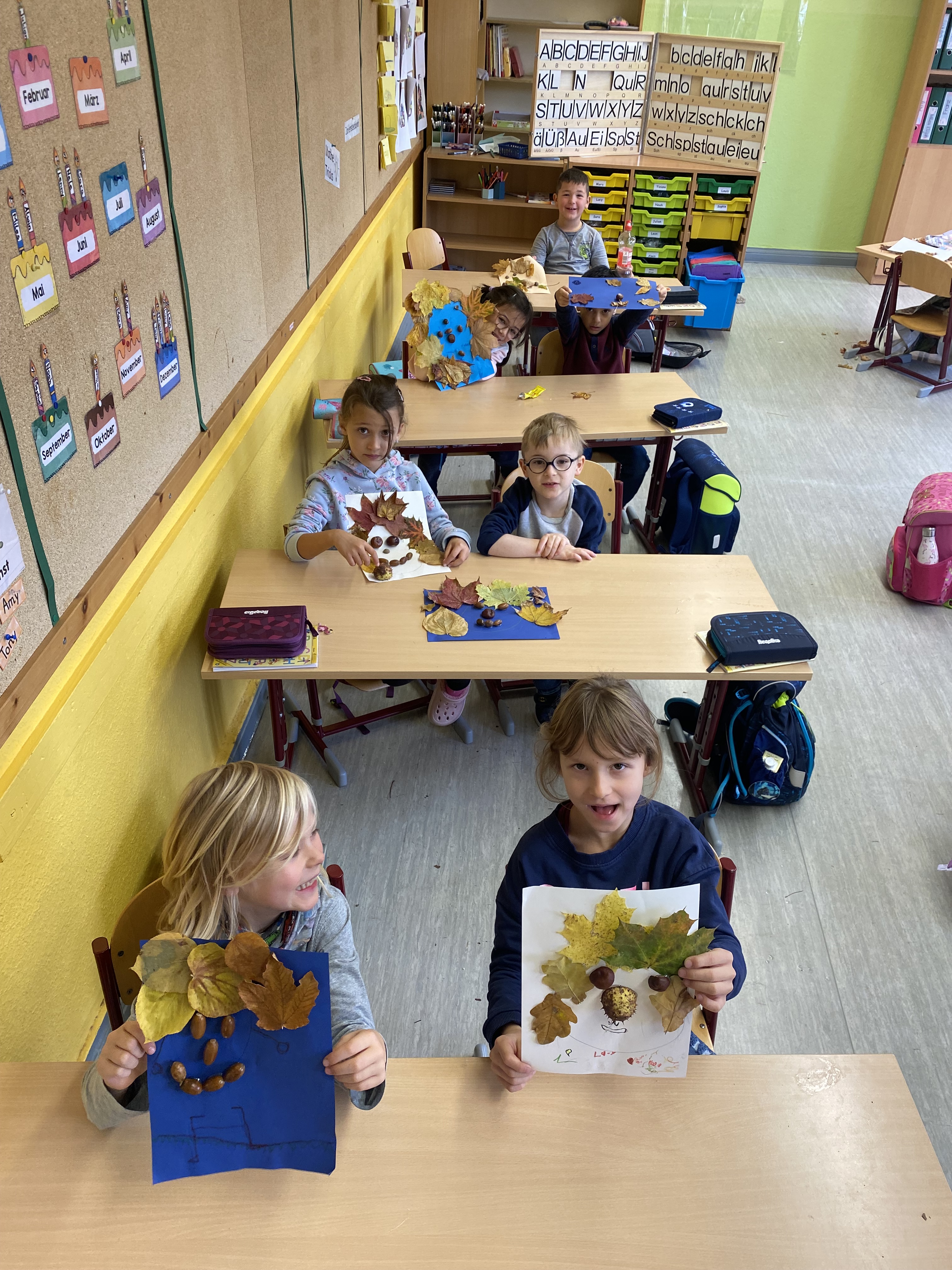 An den letzten beiden Tagen vor den Herbstferien gab es für die Kinder unserer Schule ein wenig Abwechslung. 2 Herbstprojekttage standen an. Die Kinder der Klasse 1 sammelten am Donnerstag fleißig Kastanien, Eicheln und die verschiedensten Blätter, grüne, gelbe, rote, gefleckte, gezackte oder runde. Mit dem gesammelten Material bastelten die Kinder am Freitag verschiedene bunte Herbstgesichter.