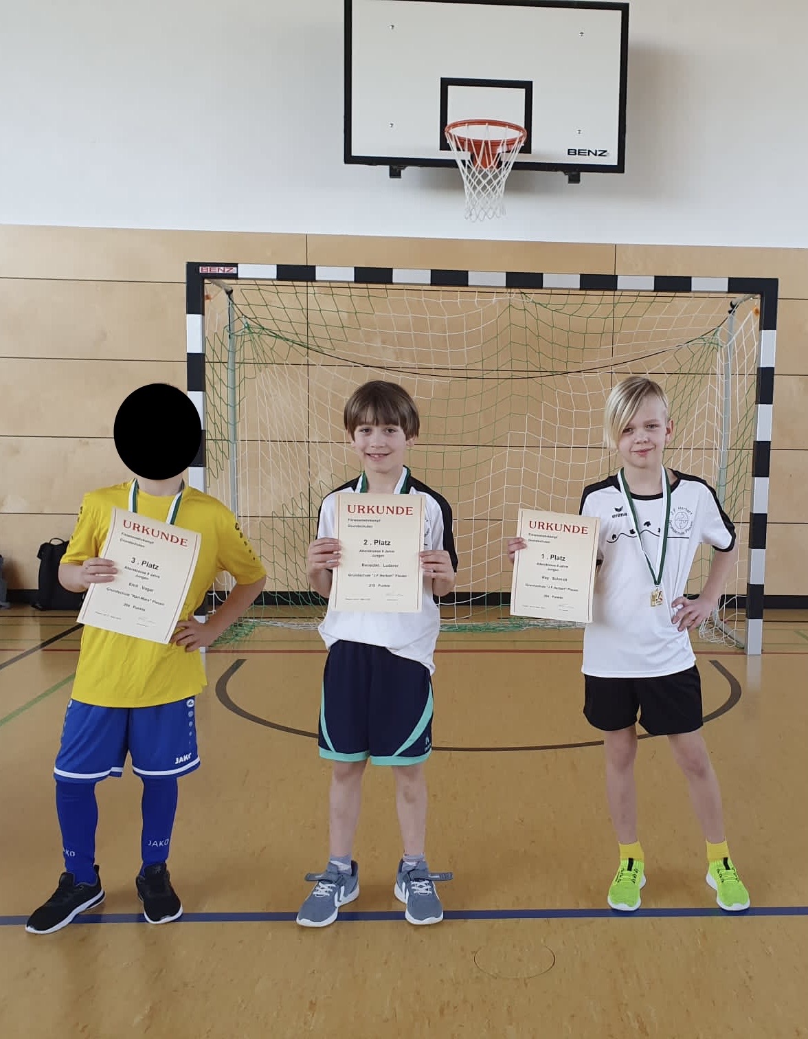 Acht Kinder der Klassenstufen 1 und 2, nahmen am Athletik Wettkampf Mitte März teil. Die besten Mädchen und Jungen der Plauener Grundschulen starteten in den Disziplinen Schlängellauf, Hockwende, Bankziehen, Dreierhopp, Medizinballwurf und Pendellauf. In der Einzelwertung der ersten Klassen belegte Lenny S. einen hervorragenden 3.Platz (Bronzemedaille). Sein Bruder Ray S. siegte (Goldmedaille) vor seinem Klassenkammeraden Benedikt L. (Silbermedaille) in der Wertung Klassenstufe 2. Das war ein Paukenschlag.