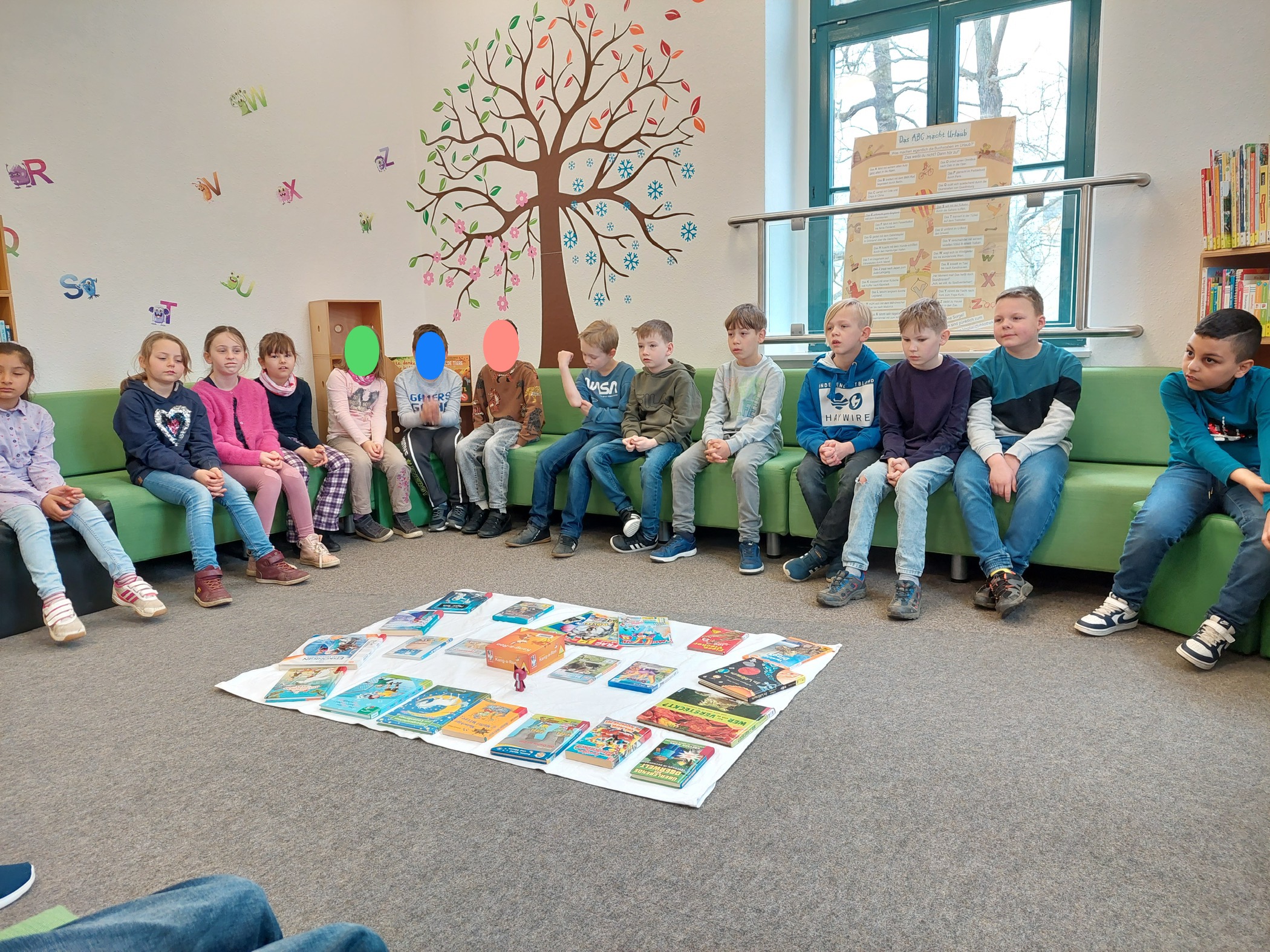 Nachdem die Kinder ihre Lesefertigkeiten im Lauf der 2. Klasse weiter ausgebaut hatten, besuchten wir Ende April die Vogtlandbibliothek in Plauen. Dort führte uns Frau Meinhold in die Welt der Bücher ein. Auf unterhaltsame Weise zeigte sie allen Kindern, welche Medien man sich ausleihen kann und wie man das richtige Buch für sich findet.