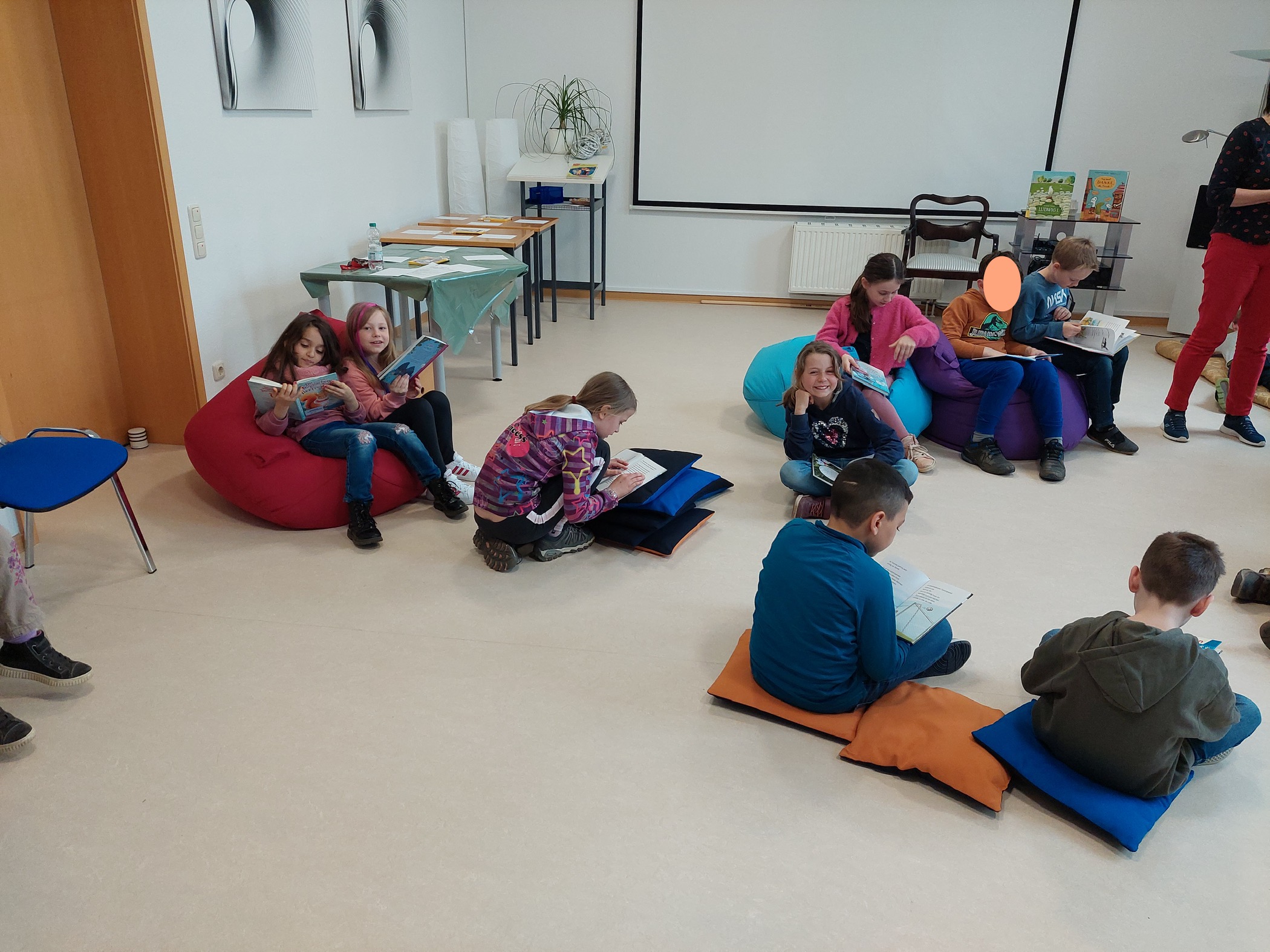 Anschließend lasen alle Kinder gemeinsam ein Buch vor. Zum Schluss durften es sich alle noch mit einem selbst gewählten Buch gemütlich machen und darin schmökern.