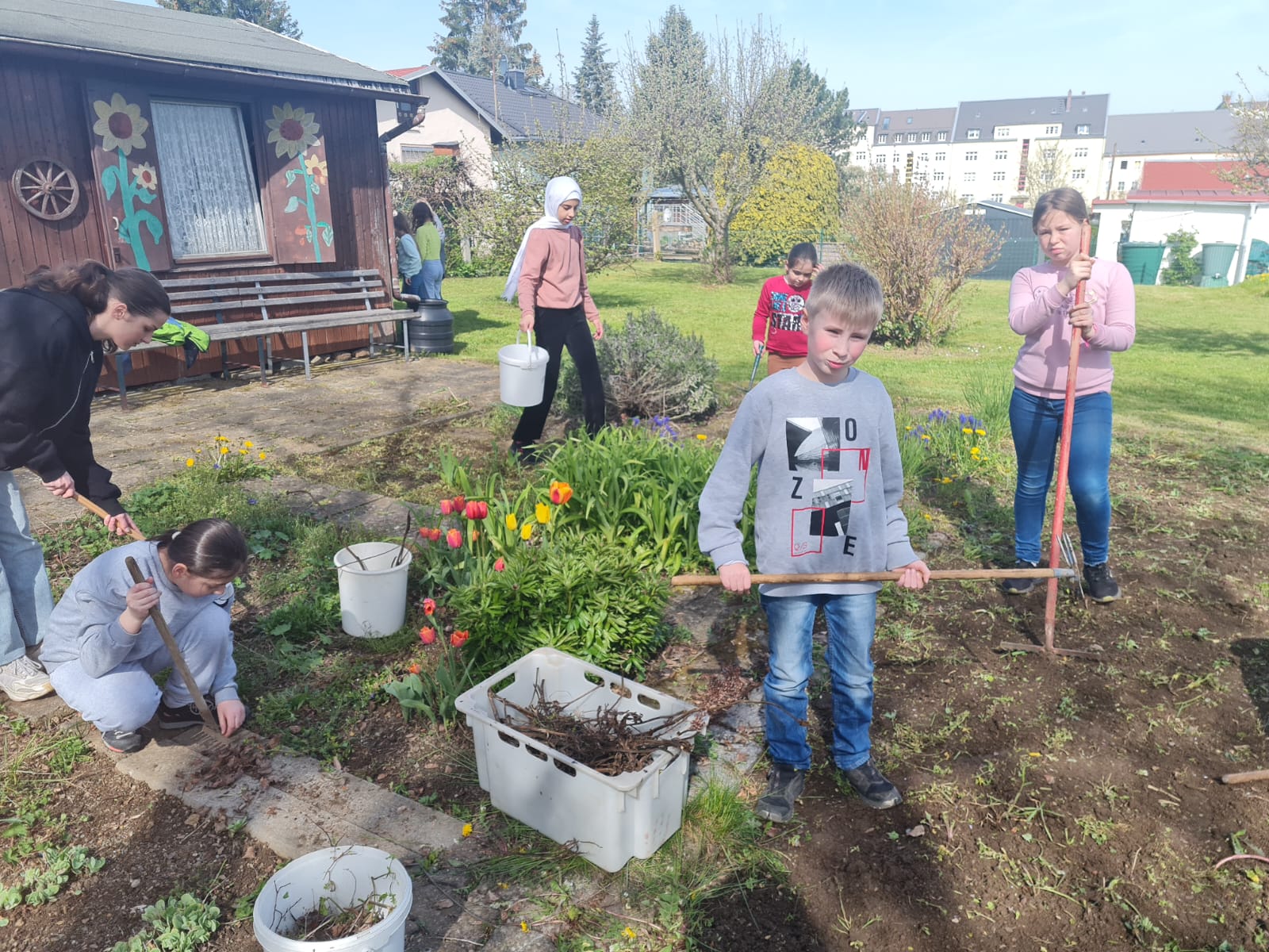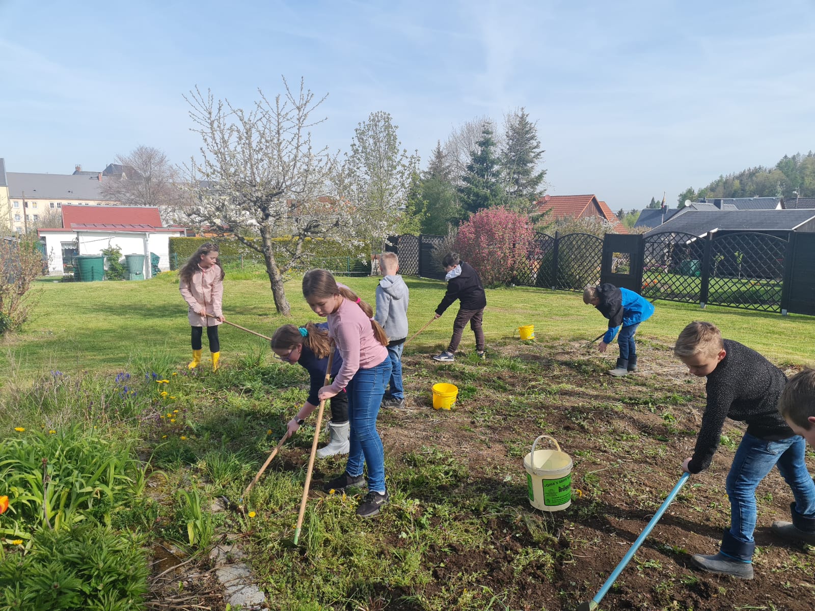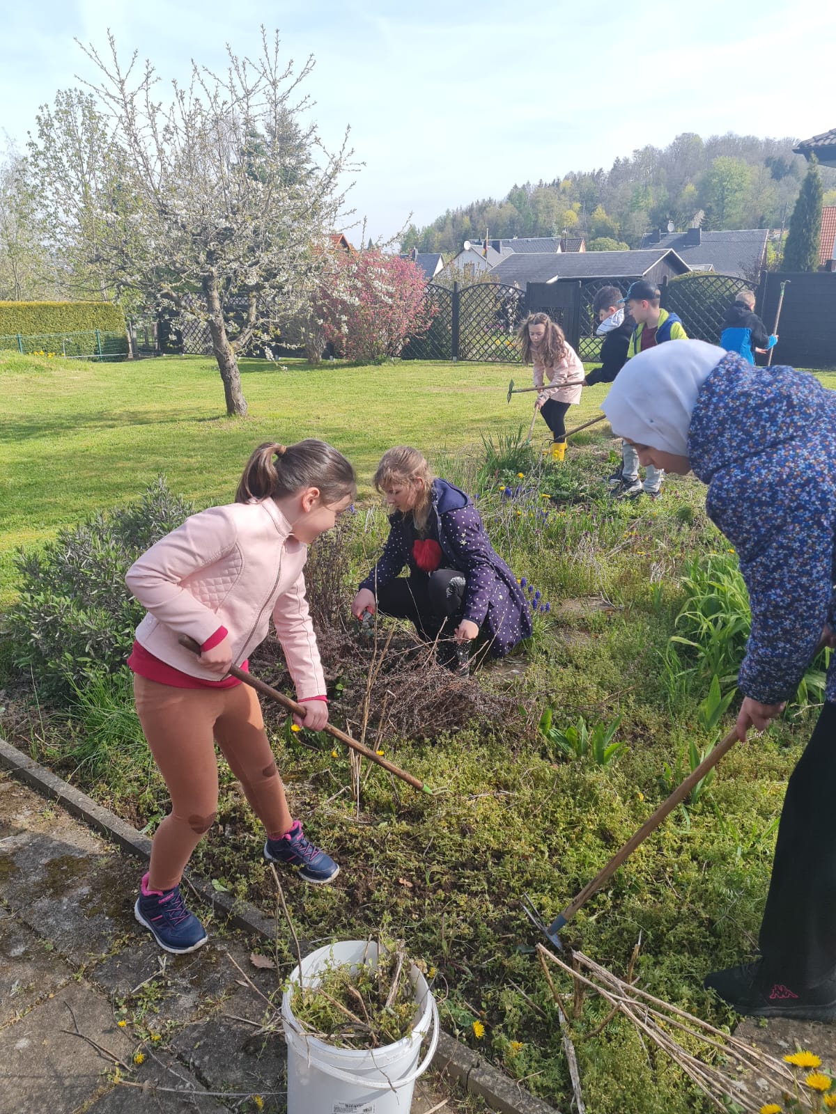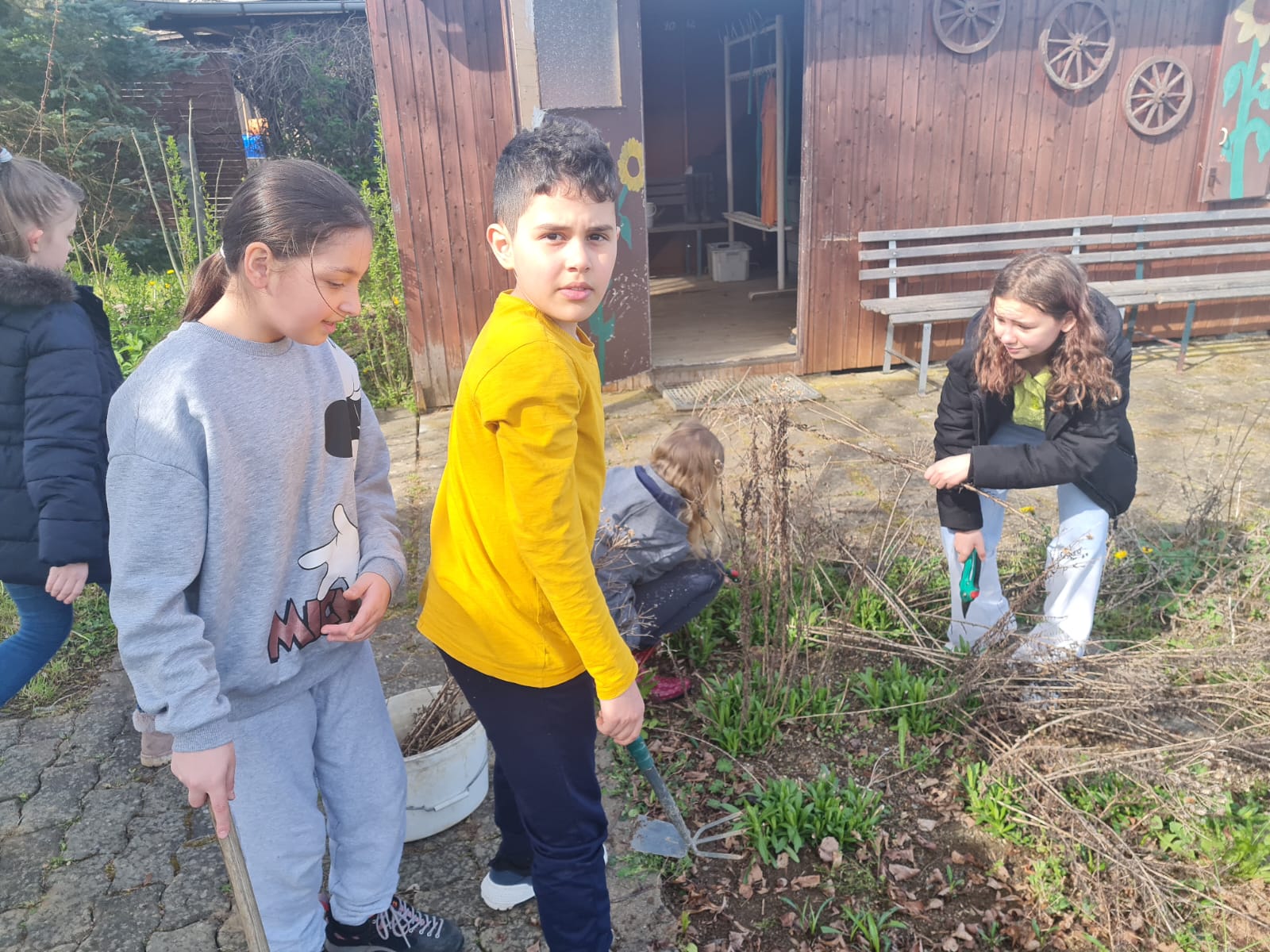 Natürlich pflegten wir unseren Schulgarten 🌷