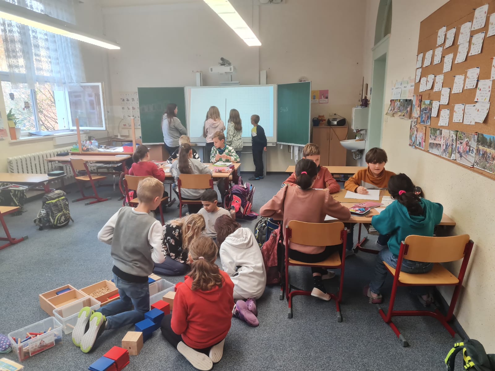Fleißig haben wir an der Stationsarbeit zu den großen Zahlen geknobelt . . .